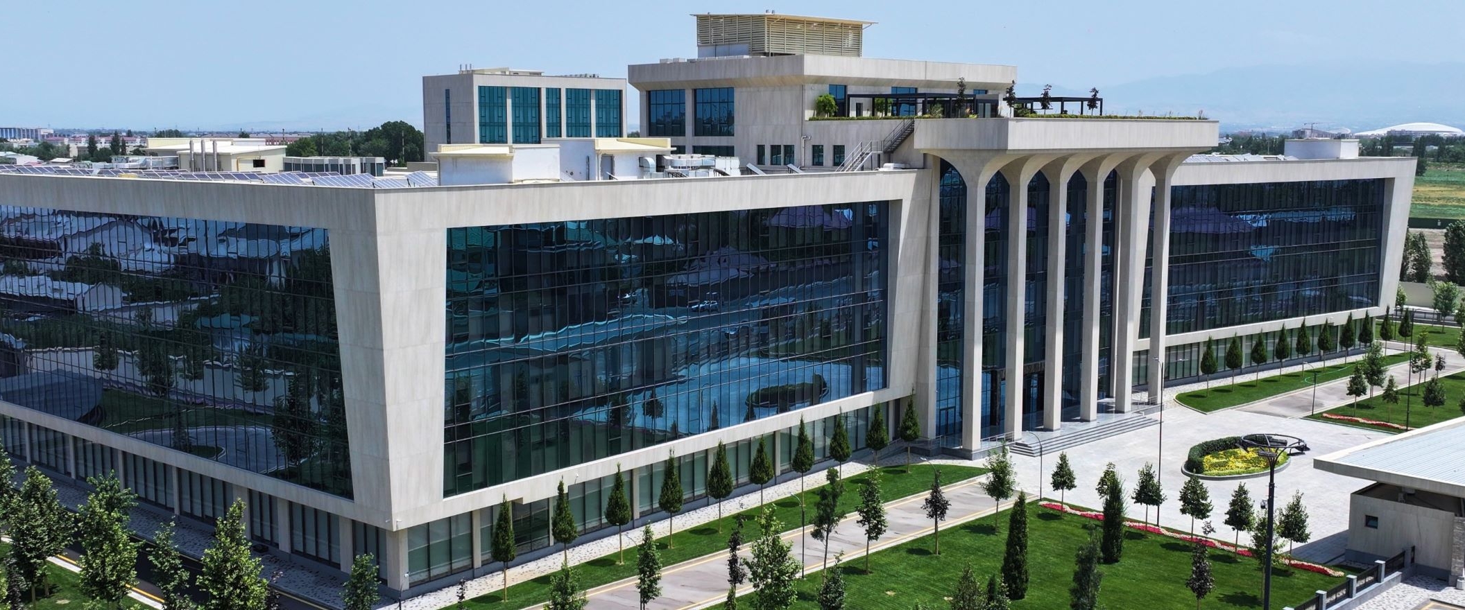 All construction materials have successfully passed seismic resistance testing and are designed for enhanced energy efficiency and environmental sustainability. The campus features advanced Italian solar panels with a capacity of 150 kWh, a Japanese Daikin ventilation system, and a German Wiesmann heating system. Security is a priority, with more than 450 CCTV cameras monitoring the premises 24/7.